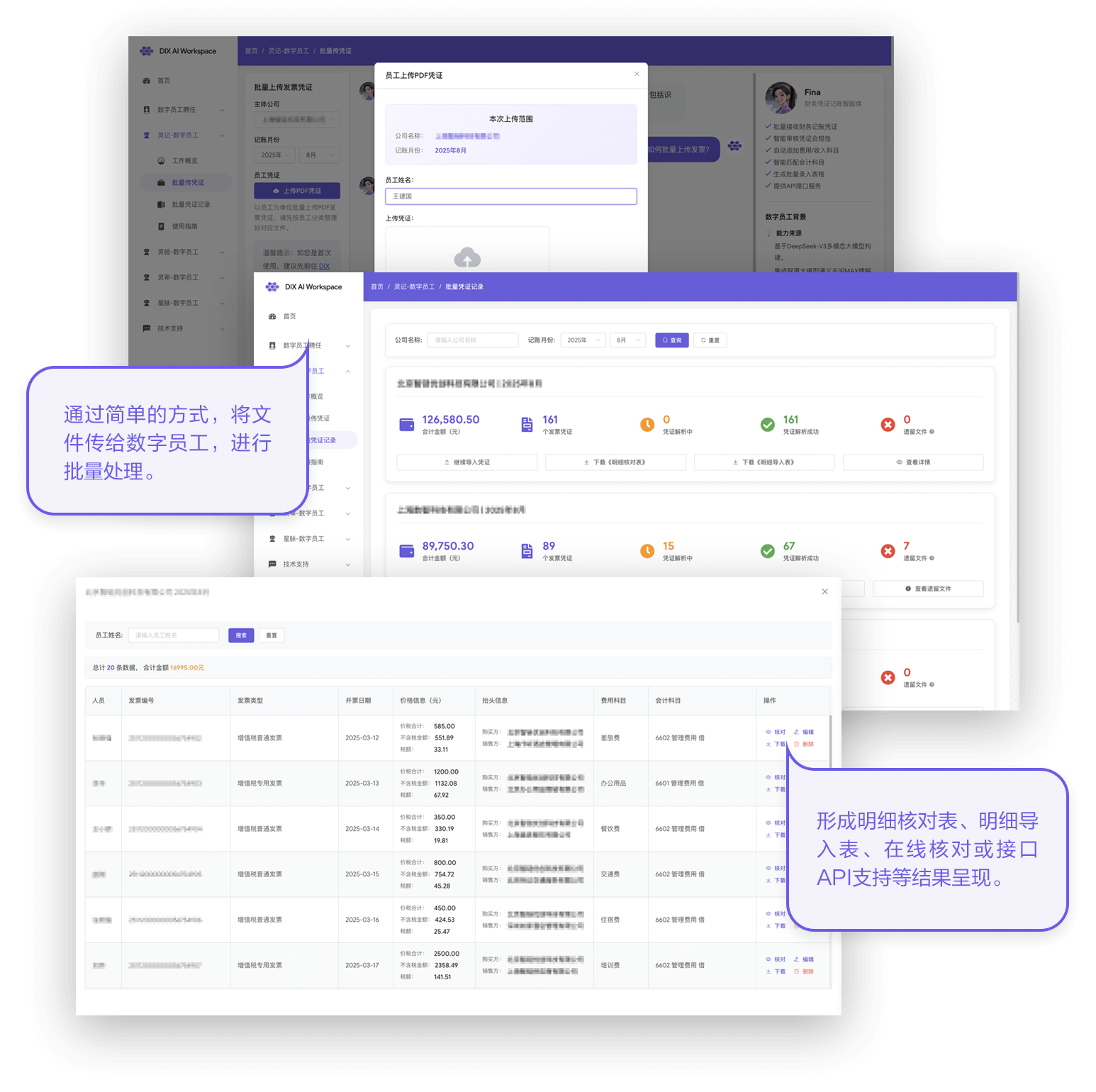 北京某代记账公司 总经理我们代记账公司的员工每天都在做重复性机械性的记账工作,效率低下且容易出错。自从引入DIX AI的Fina数字员工后,凭证处理效率提升了3倍,同样的团队规模现在能承接更多的业务,企业收入增长了40%,员工也能从繁琐的重复工作中解放出来,专注于更有价值的客户服务工作。