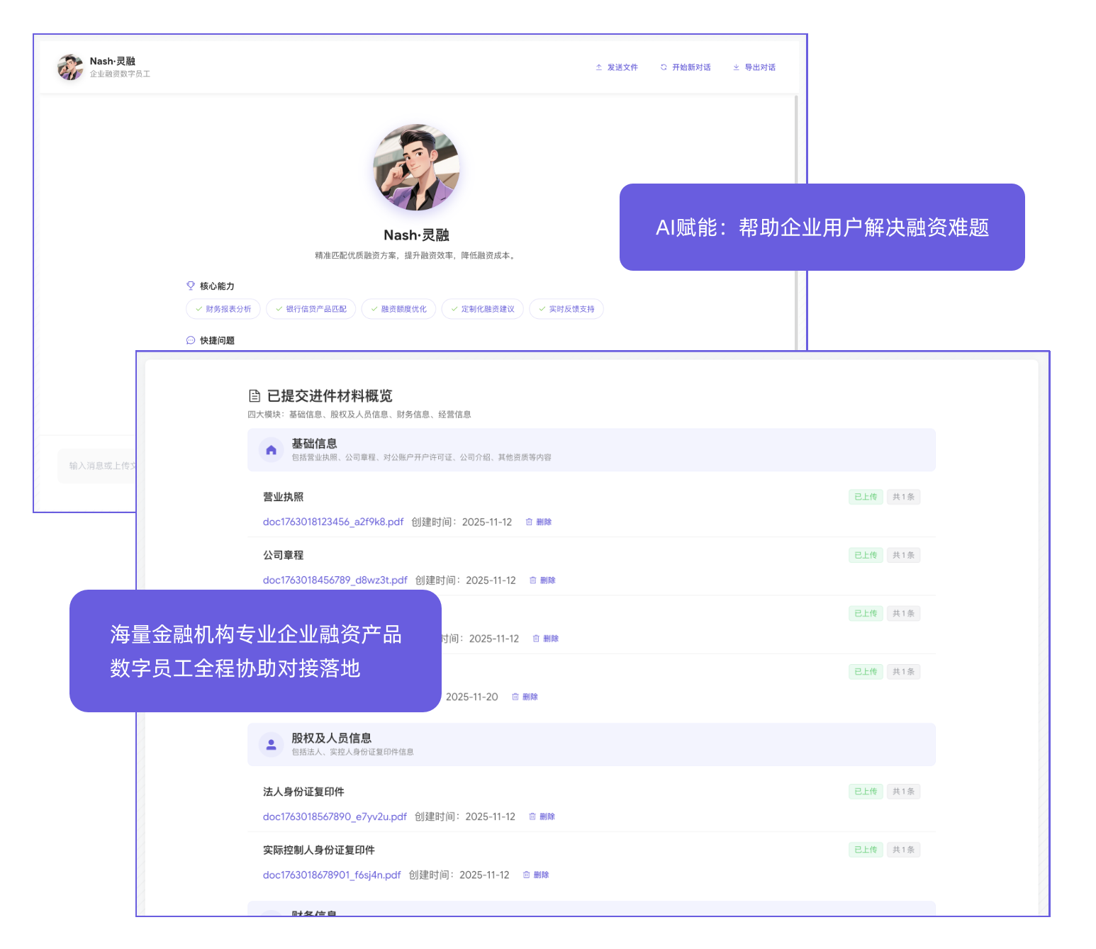 中型制造企业 财务总监灵融企业融资数字员工在我们公司的融资过程中提供了非常专业的建议,帮助我们快速找到了最适合的融资方案。通过Nash的分析,我们不仅获得了理想的融资额度,还大大缩短了融资时间,为公司的发展争取了宝贵的时间。